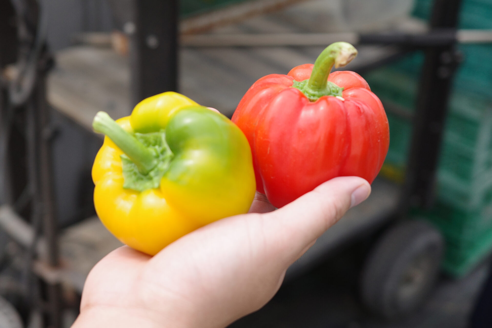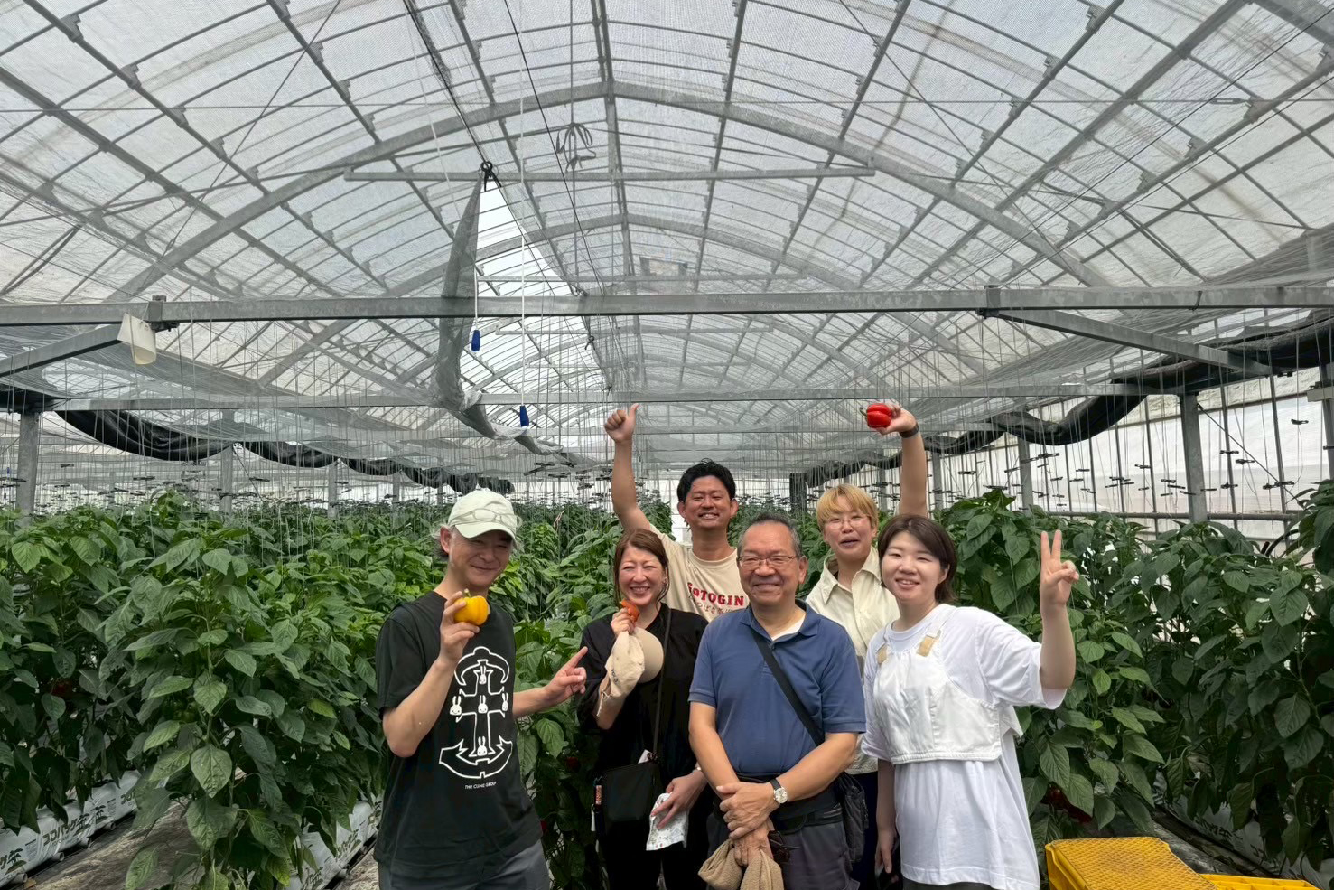 ビニールハウス内にはずらりと赤と黄色のパプリカがなった苗が並んでいて、まだ少し小ぶりで可愛らしい実がなっていました。その場で収穫して贅沢にかじると、肉厚でジューシー、まるでフルーツのような甘さに思わず声が出てしまいました。
