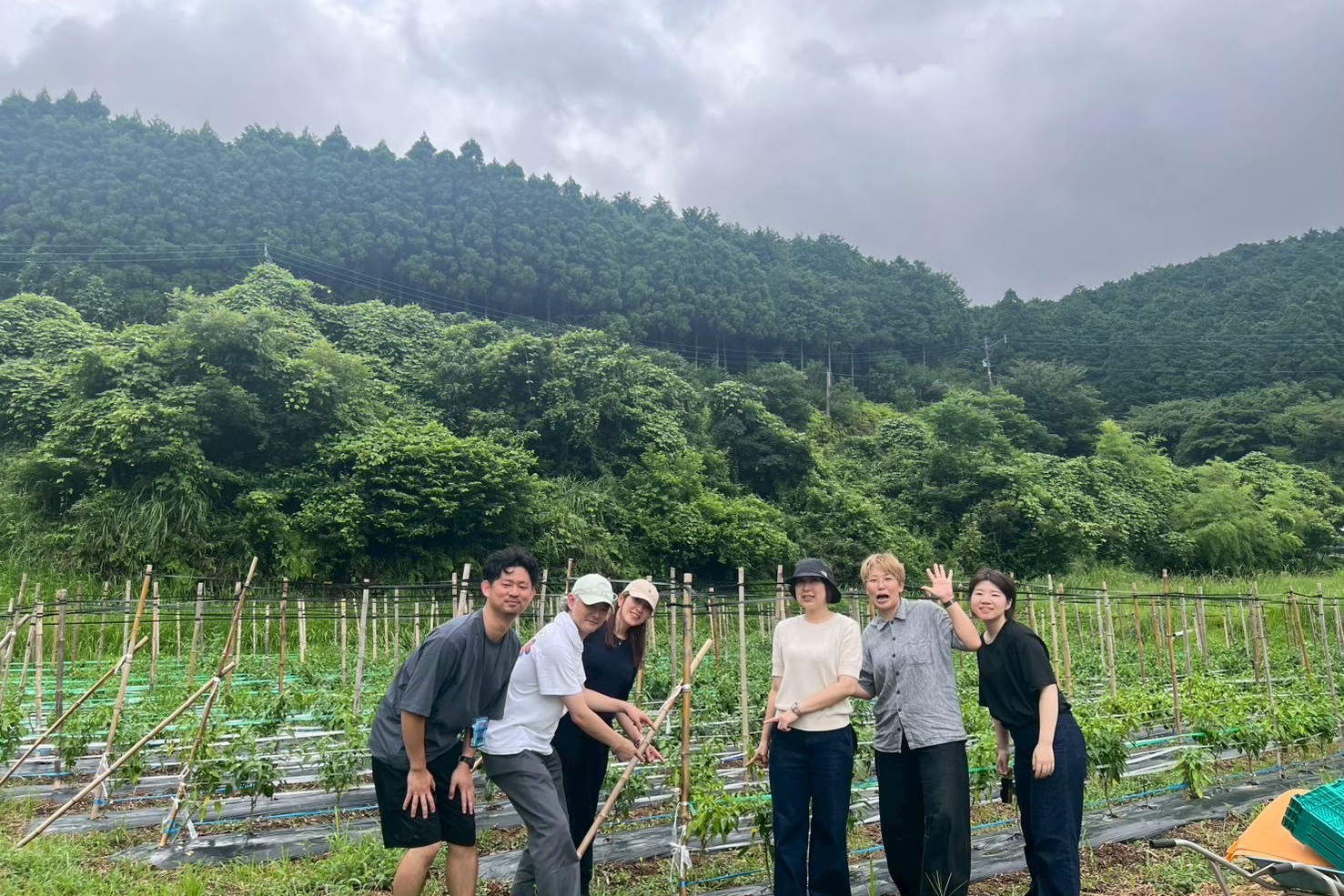 直売所から車を少し走らせた場所に畑はありました。雨上がりのぬかるんだ赤土に足を取られながら、ぴょんぴょん跳ねるカエルを追いかけたり、とんぼを追いかけたり、自然を目の前にして子供に戻ったようにはしゃいでいました