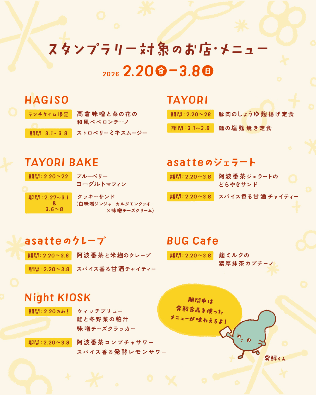HAGISO Inc.の全店舗で、発酵をテーマにしたスタンプラリーを開催します。
