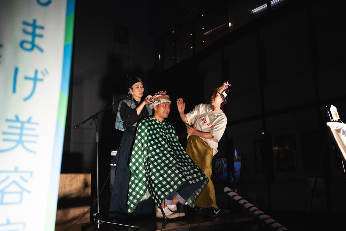 Nippori Sharebaseによるちょんまげ美容室パフォーマンス!?