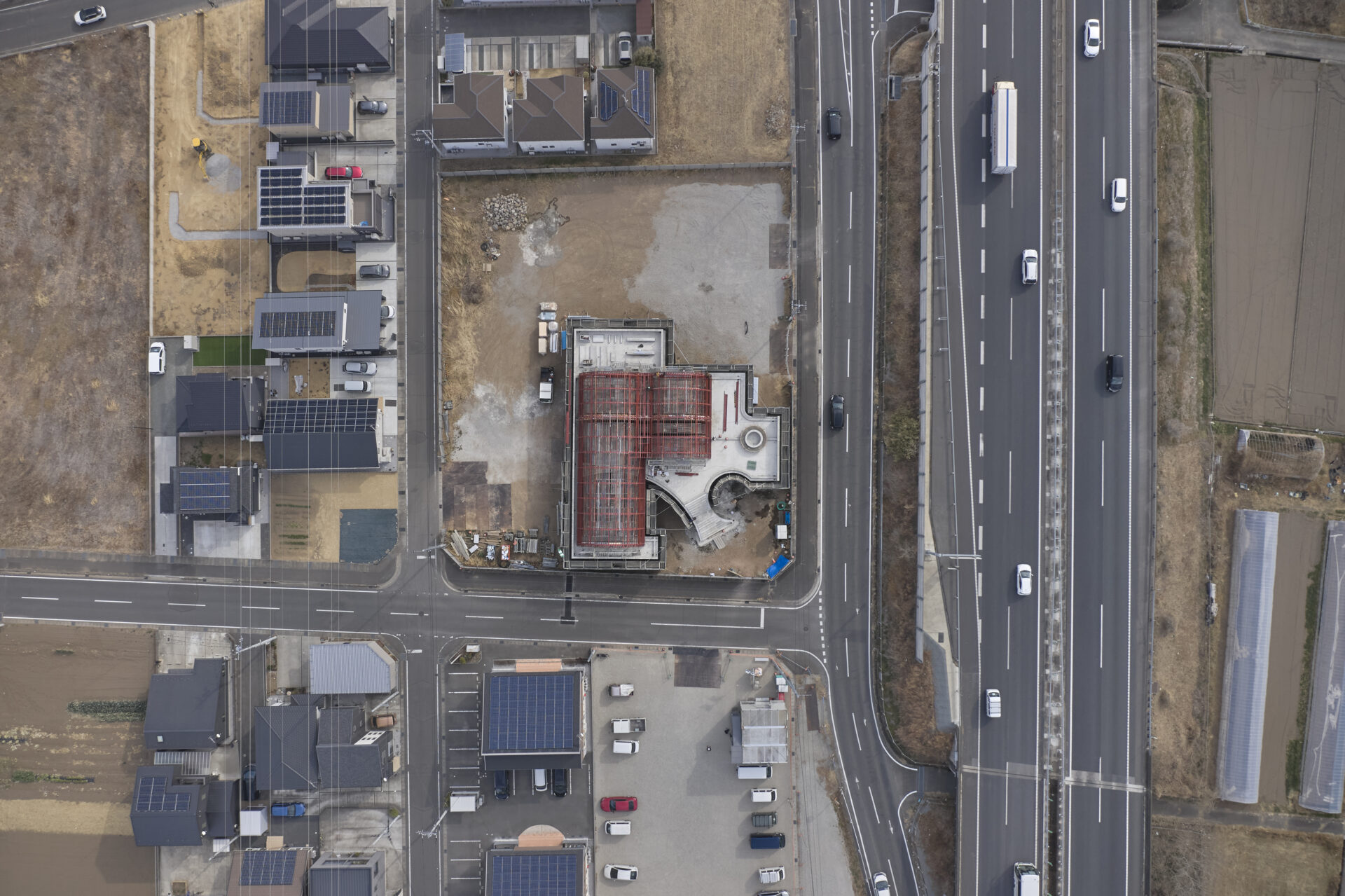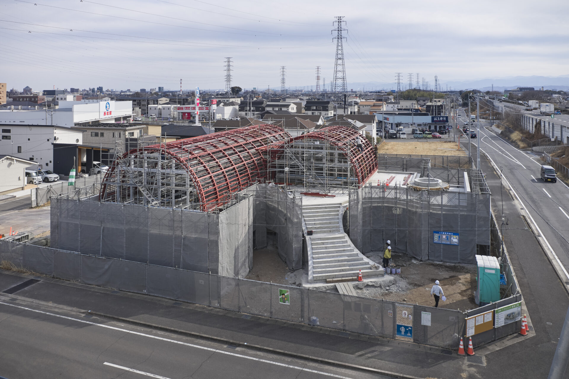 前橋市郊外、元総社町に計画中の整形外科クリニック。古墳時代からの歴史と高速道路や宅地開発など現代の利用とが重なる地域に、公園のように地域にひらかれたクリニックの建設が進んでいます。