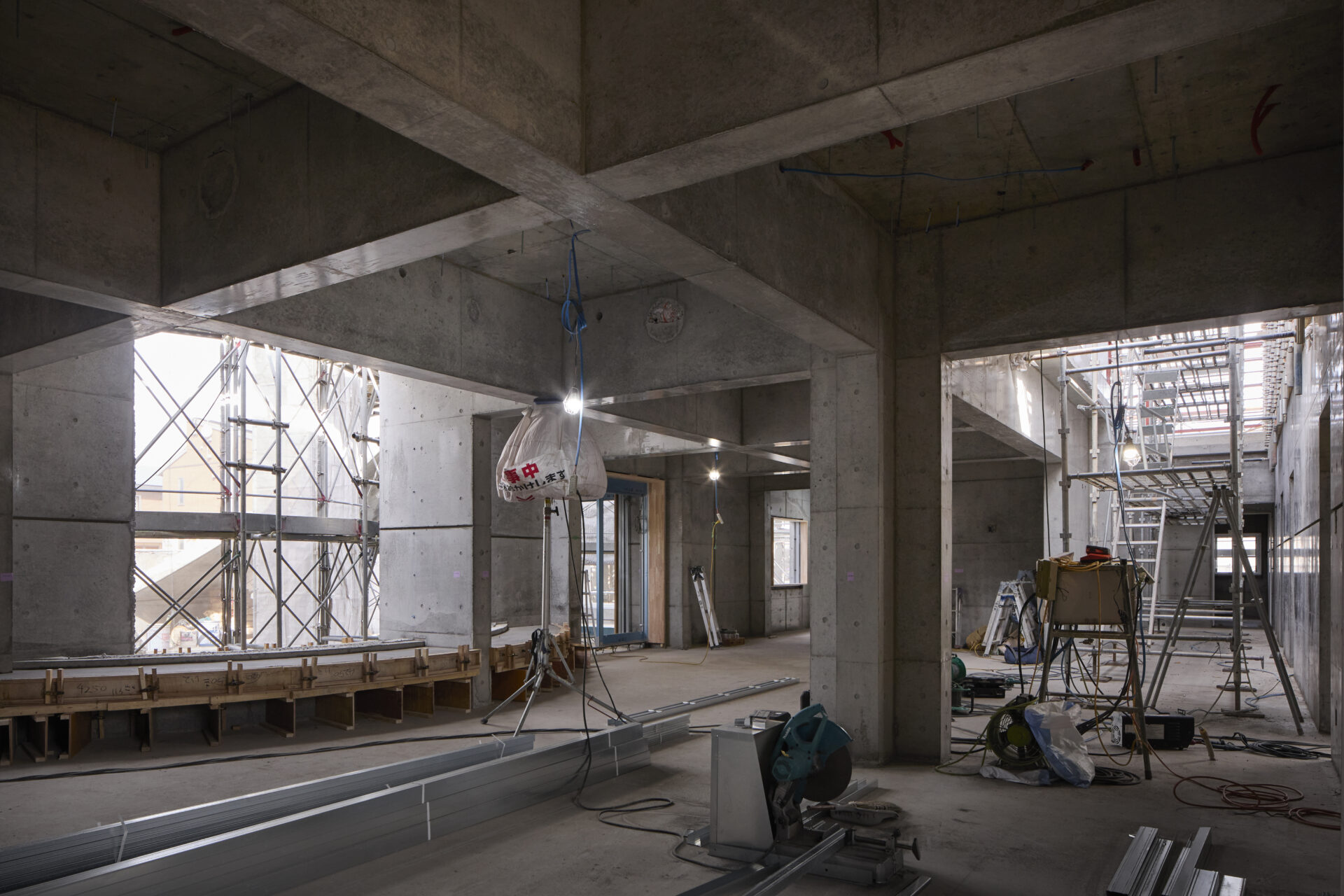 用途が医療施設ということもあり、機能・衛生・アメニティ・操作・保守・省エネをバランスよく配慮した計画とした。構造との絡みでは、居室に見えてくる梁に対して途中途中に現れる吹き抜けにより建物内を横断する空調のダクトルートの制約とスリーブ貫通とともに計画を図った。コスト面では、汎用機器を多用することで抑制するだけでなく、高い意匠性に配慮しつつも、意匠的に重要な空間の優先順位を確認し、予算に追従できるようメリハリのある設備計画を実現した。