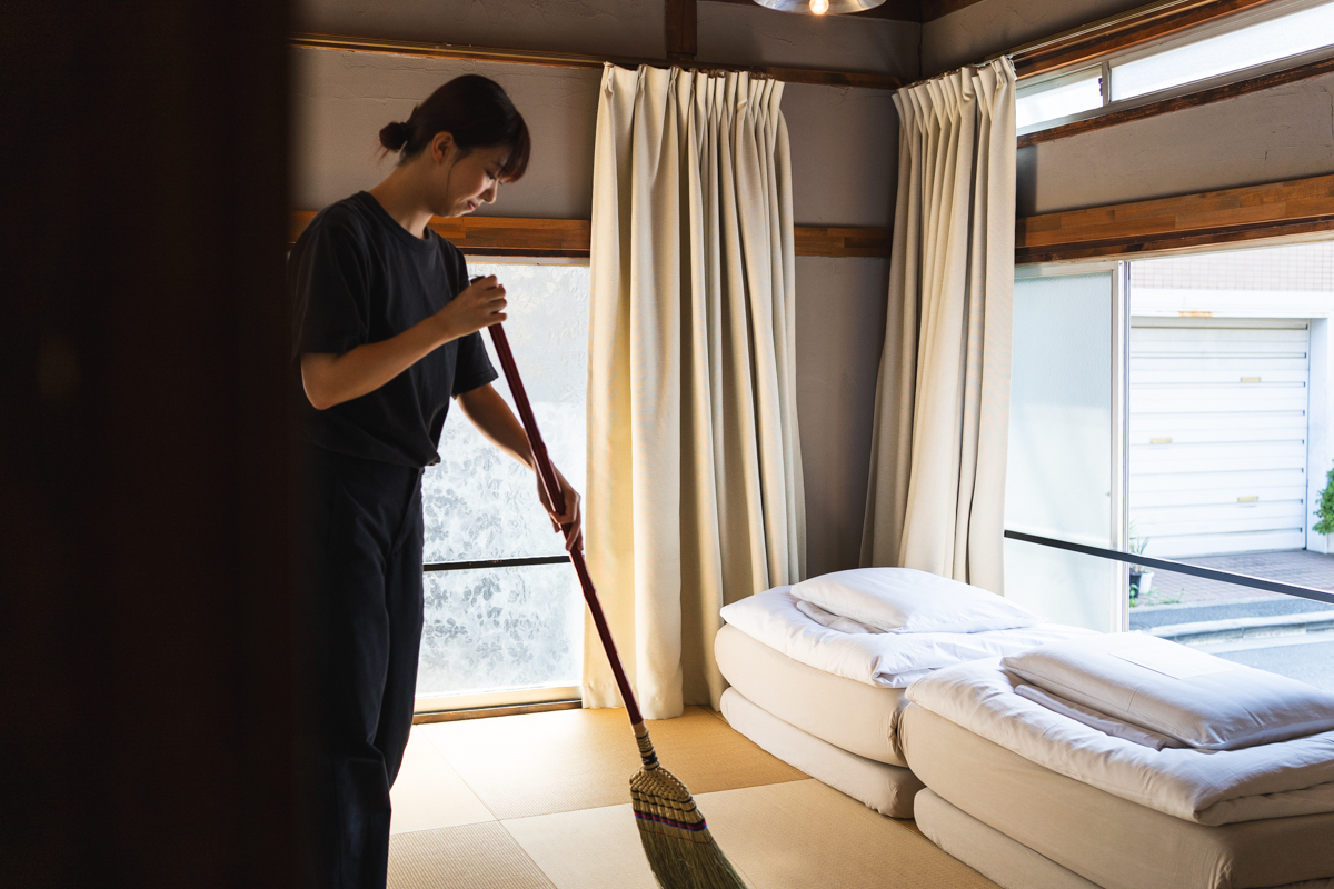 予約管理、メール、電話対応、客室含め施設内の清掃・セットアップ、朝食の配膳、まち歩きツアーなど、ご宿泊者様に携わるサービスを実践していただきます。
