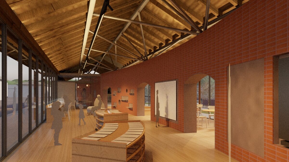 下仁田町街なか活性化事業の整備計画の一環として、下仁田駅前の憩いの場となる空間を計画しています。発着駅である下仁田駅前の敷地で、南側(線路、鏑川方面)と 北側(街なか方面)の両面に対して有効にはたらきかける拠点となる施設を目指しています。